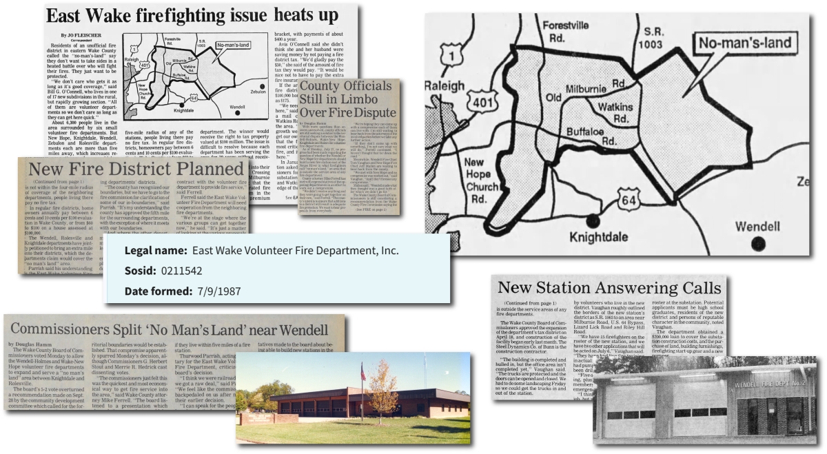 Two of the departments, New Hope and Wendell, each wanted to establish “substations” in the heart of the area, which could “support only one department.” And the “winner would receive the right to tax property valued at $100.”