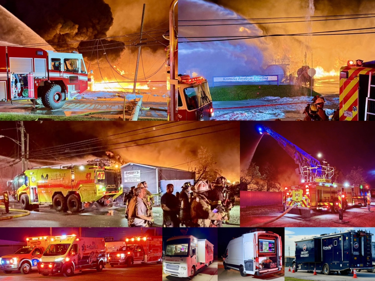 Okolona Fire Department was first-due. Numerous fire departments were dispatched, including a multi-alarm response from Louisville. Extensive mutual aid was sent from neighboring counties. Some resources–notable ARFF units and foam quantities–travelled over 60 road miles to the scene. Over 200 responders were on scene.
