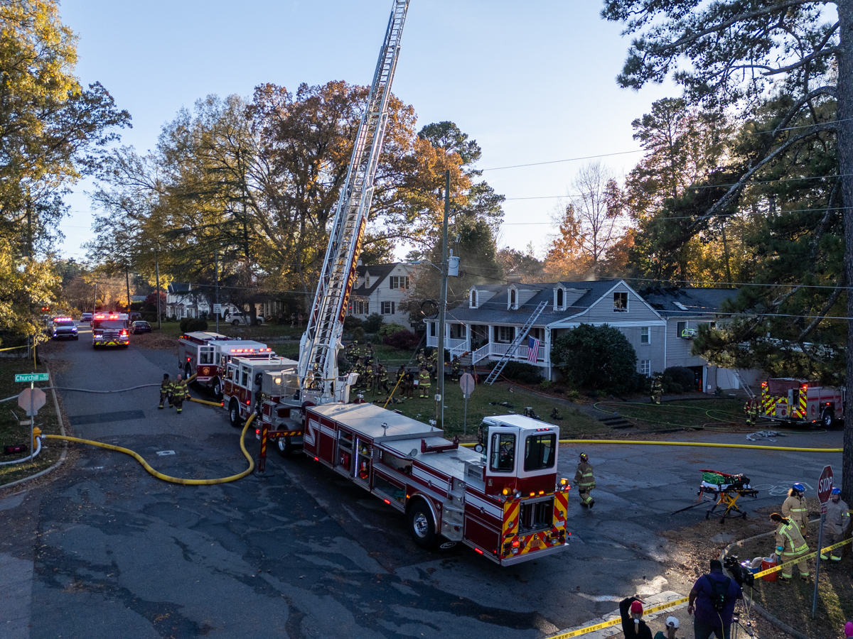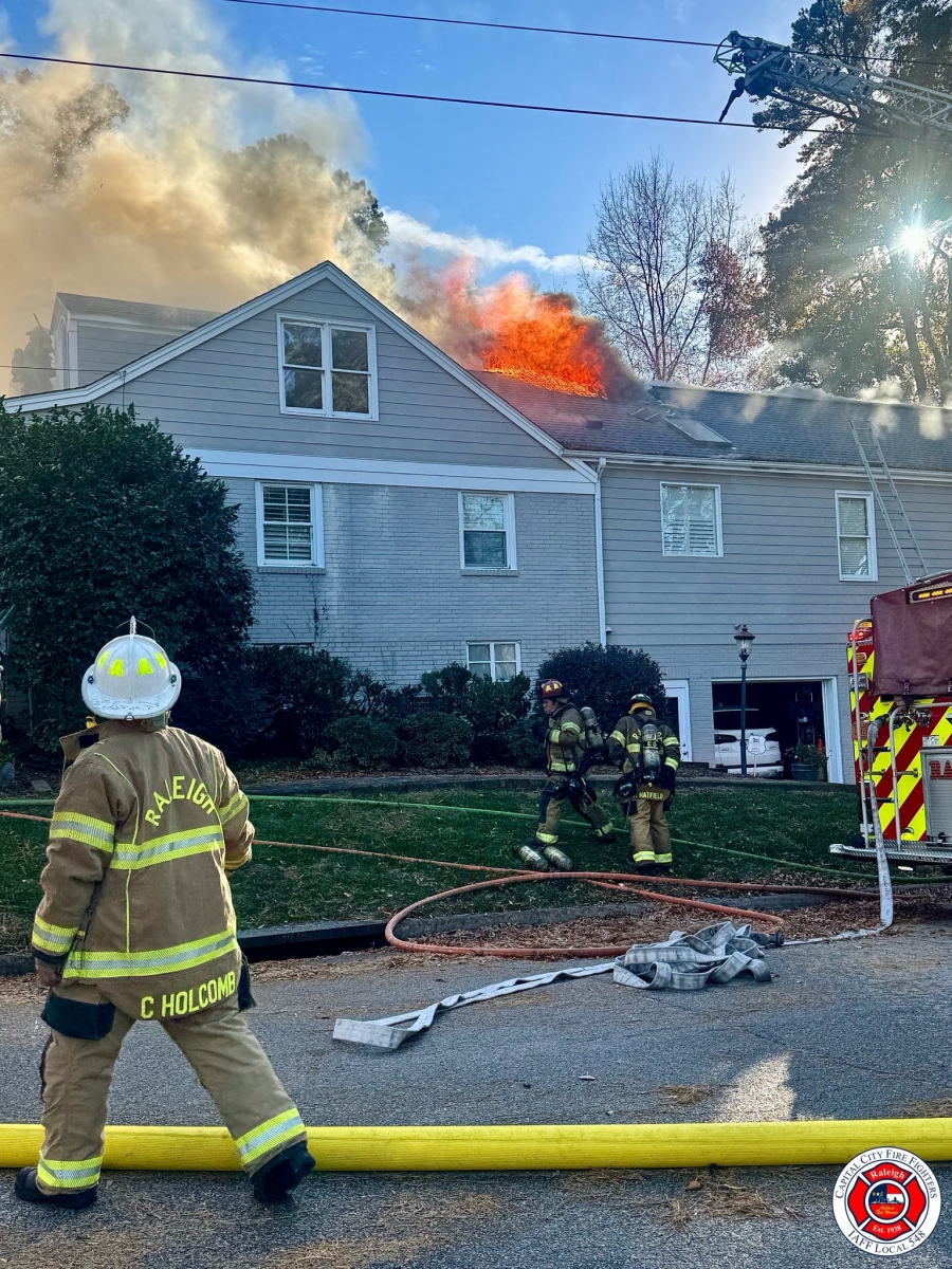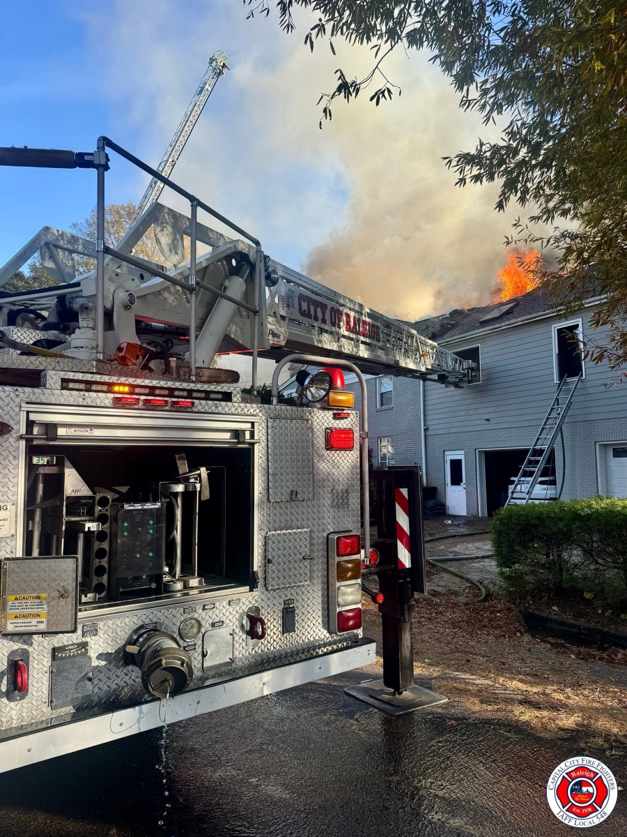 Two alarms were struck at a house fire in Raleigh on Sunday, November 16, 2025.