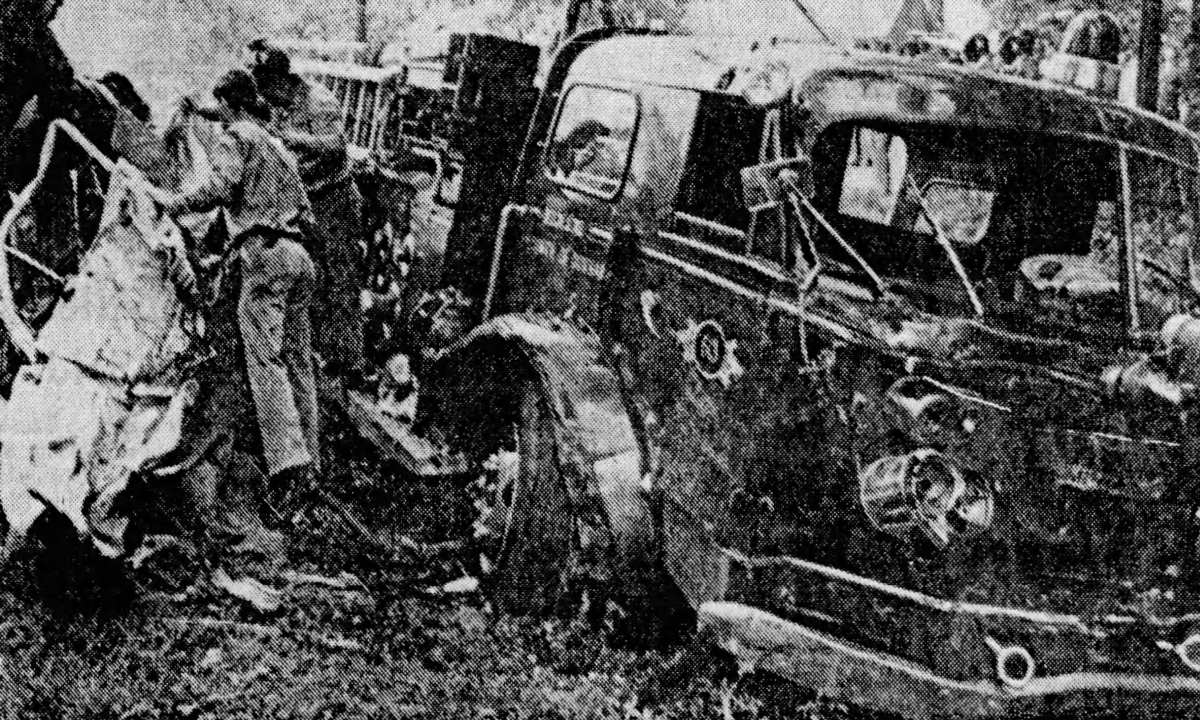 The apparatus was answering a fire call on Hamlin Road. The vehicles collided in the middle of the intersection. Both the driver and his wife were thrown from the car. The apparatus operator, Harold Roberts, was charged with manslaughter. At least one witness said that the car had the green light. However, police said that fire trucks were not required by law to stop for stop lights when answering an emergency call.