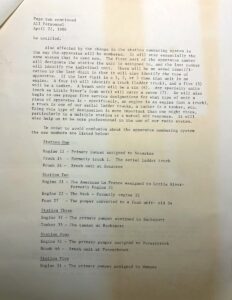 From South Carolina, memorandum of changes to Horry County fire stations and fire apparatus numbers, dated April 22, 1986. Original images at bottom. Here’s a transcription from ChatGPT: