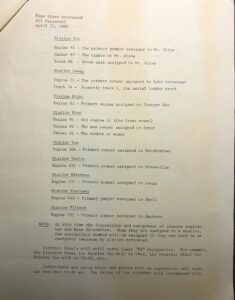 Also affected by the change in the station numbering system is the way the apparatus will be numbered. It will stay essentially the same system that is used now. The first part of the apparatus number will designate the station the unit is assigned to, and the last number will identify the individual unit. There will be an added identification to the last digit in that it will also identify the type of apparatus.