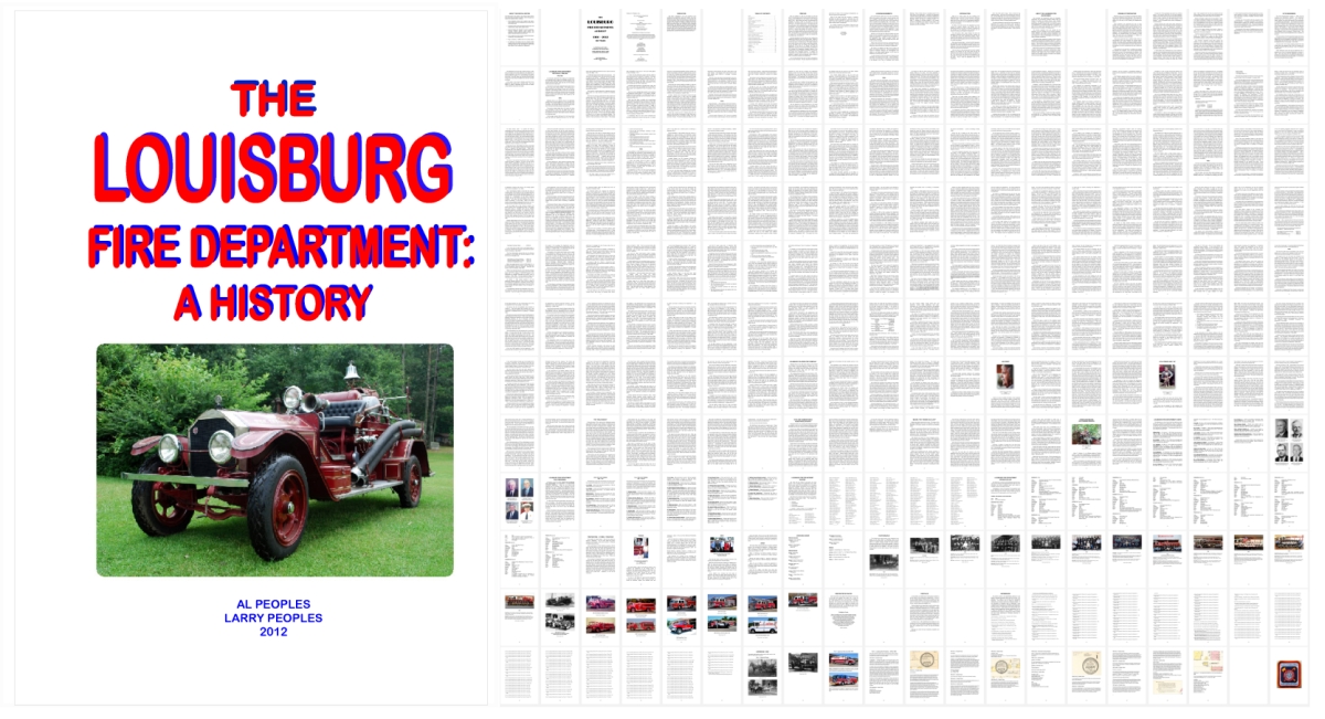 Presenting a digital version of The Louisburg Fire Department: A History, a book by Al Peoples and Larry Peoples. It was self-published in 2012 and printed by SGA Publishing in Oxford, NC.