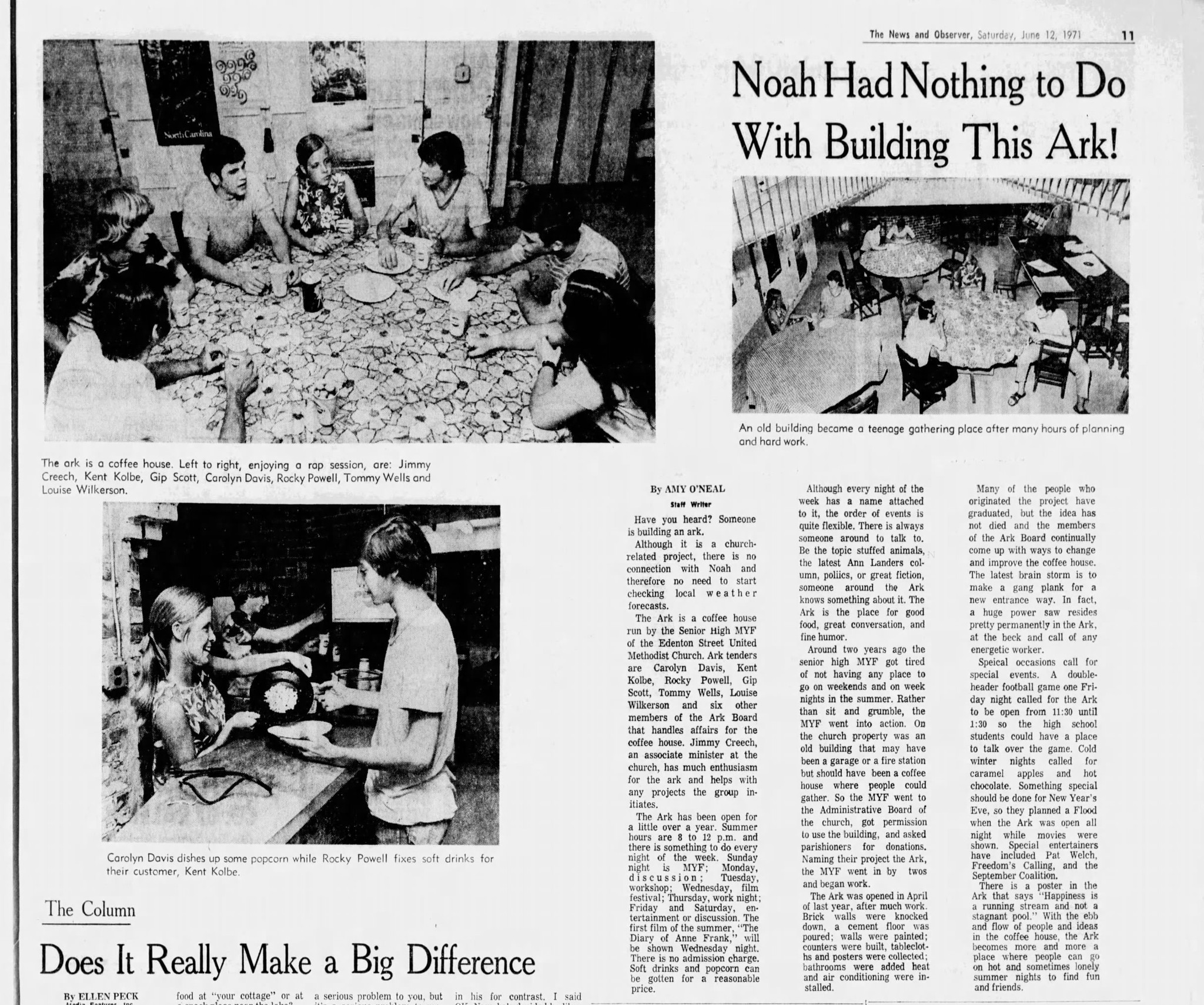 That’s also what the News and Observer said about the building on June 12, 1971, which at the time was operating as a coffee house run by high school members of nearby Edenton Street United Methodist Church, located one block east. It was called the Ark, and it opened in April 1970. See article in comments.
