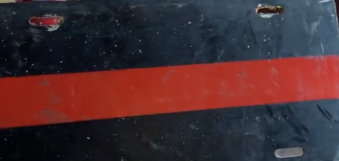 As Jeff said, we created the concept in 1999 or 2000. Below is a picture of my original license tag, which I still have hanging in my garage. We made the first batch using any tags we could find at stores–auto parts stores or Walmart or Kmart–and repainting them. Then we turned to a local sign shop and I had the first batch professionally made. I believe we had 50 made and we sold them friends at Apex, Cary, and Fairview fire departments. We branded the plates as the “Thin Red Line of Courage” and some sort text to accompany. It was printed on business cards and attached to each tag that we sold.