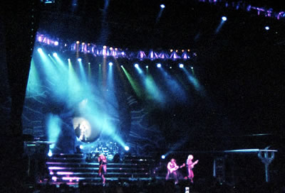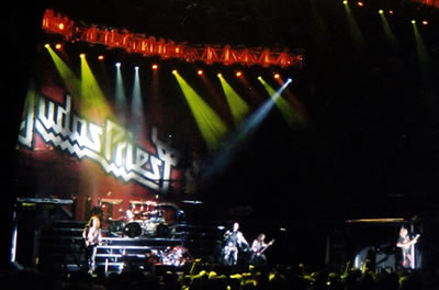 installed for Judas Priest. Banner behind drum riser appears to be