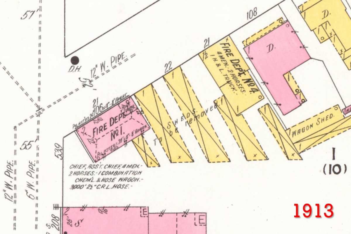 By August 1924, a new Station 1 was under construction on the site of the old central fire station. The building site was also larger than its predecessor, with additional land acquired by June 1924. The larger building replaced both the fire station and the separate building behind it, used by the hook and ladder company.